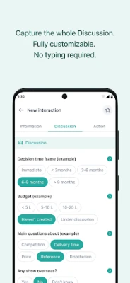Tap a few buttons to capture all key data - who you met, what you learnt about them and what to do next
