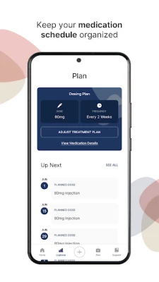 · Plan Setup: Set up your dosing plan, schedule dosing reminders, and track when to take your medication.