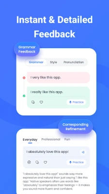 Get real-time corrections and personalized tips during conversations to sharpen your vocabulary, pronunciation, and fluency.