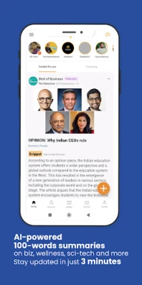 Concise 100-word summaries of curated articles, videos, & podcasts from 50+ global iconic publications & 200+ independent thinkers on business, science & technology, health & wellness, geopolitics, pop culture, and more across your interests.
